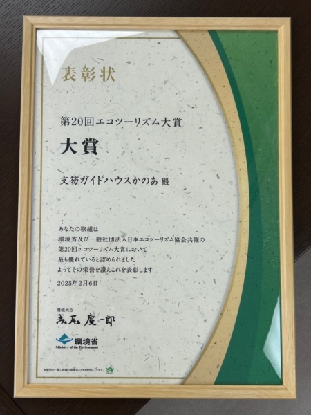 「支笏ガイドハウスかのあ」がエコツーリズム大賞を受賞しました!
